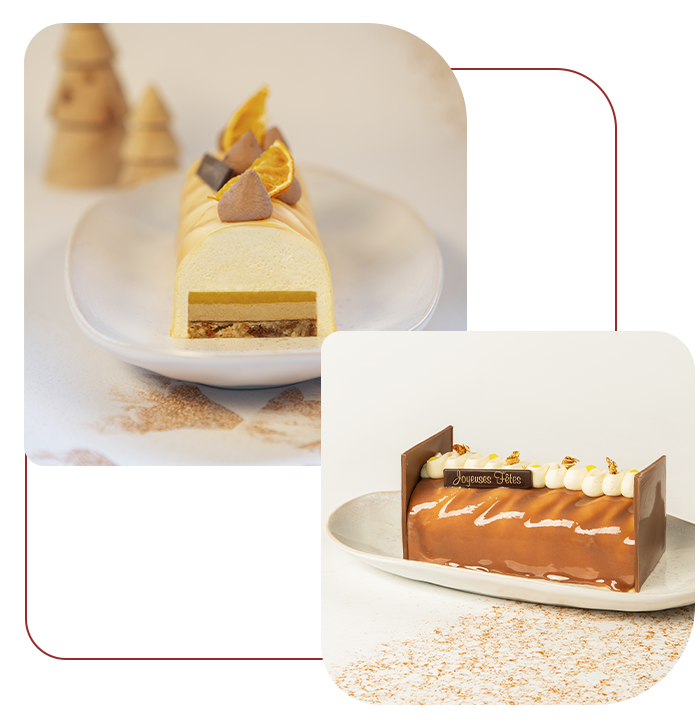 This year, our workshop unveils an exclusive selection of handcrafted logs in creative, refined flavors: Milk Chocolate-Popcorn, Mandarin-Speculoos, Blueberry-Basil, Passion-Honey. Four creations designed to enhance your festive celebrations, created with the expertise of our pastry chefs.